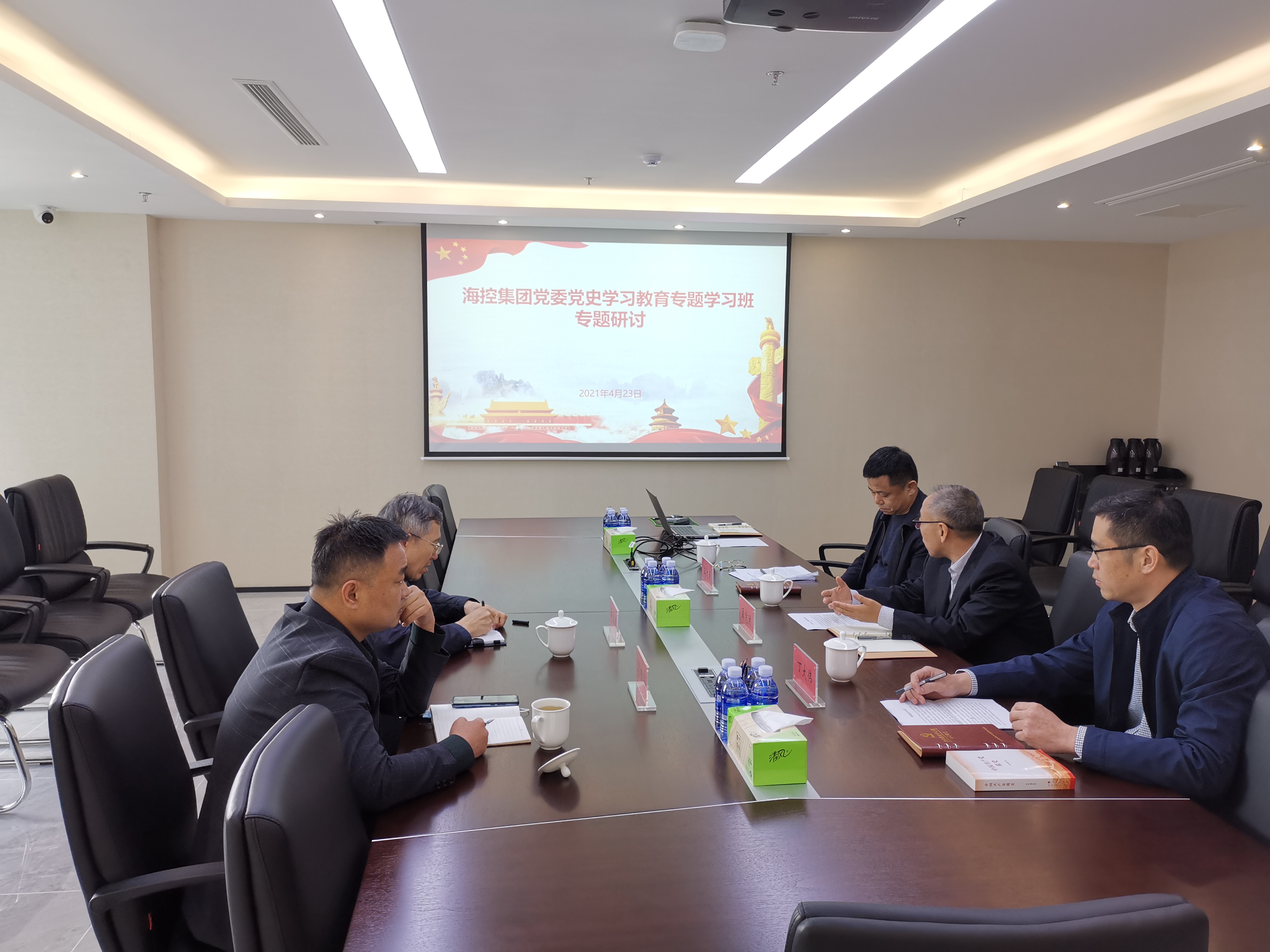 4月23日上午,??丶瘓F(tuán)黨委組織開展黨史學(xué)習(xí)教育專題學(xué)習(xí)班集體研討。黨委班子成員孟憲洪、王文景、丁大偉同志出席研討會(huì),工委(區(qū)委)黨史學(xué)習(xí)教育工作第八巡回指導(dǎo)組組長(zhǎng)薛福建同志參會(huì)指導(dǎo)。