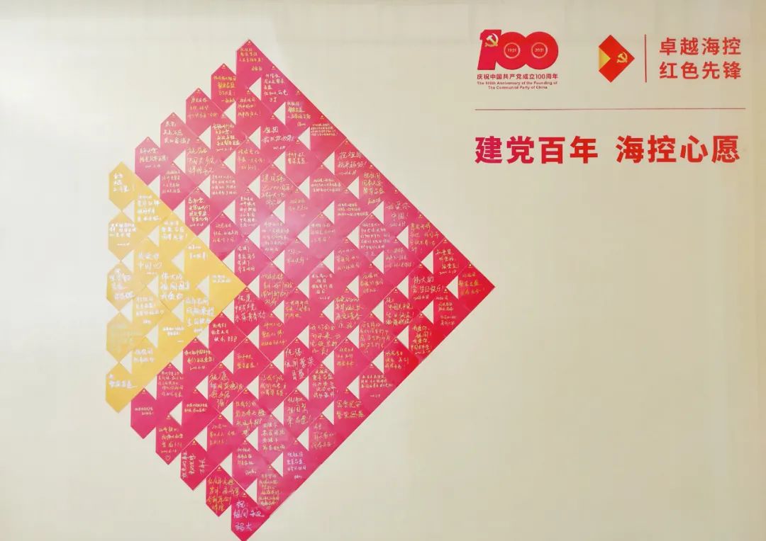 活動(dòng)期間,在印有中國(guó)共產(chǎn)黨成立100周年慶?;顒?dòng)標(biāo)識(shí)和“卓越???,紅色先鋒”黨建品牌的許愿墻前面,黨員干部職工紛紛領(lǐng)取特制的海控許愿卡,認(rèn)真寫下自己的祝福語(yǔ),并鄭重地張貼在許愿墻上,“感謝黨,是您讓我們挺起脊梁,昂首向前”、“祝祖國(guó)國(guó)泰民安,繁榮昌盛”......所有的心愿卡共同匯聚成巨大的紅色??丶瘓F(tuán)標(biāo)識(shí),表達(dá)了??丶瘓F(tuán)及全體黨員干部職工對(duì)黨和祖國(guó)的美好祝愿。