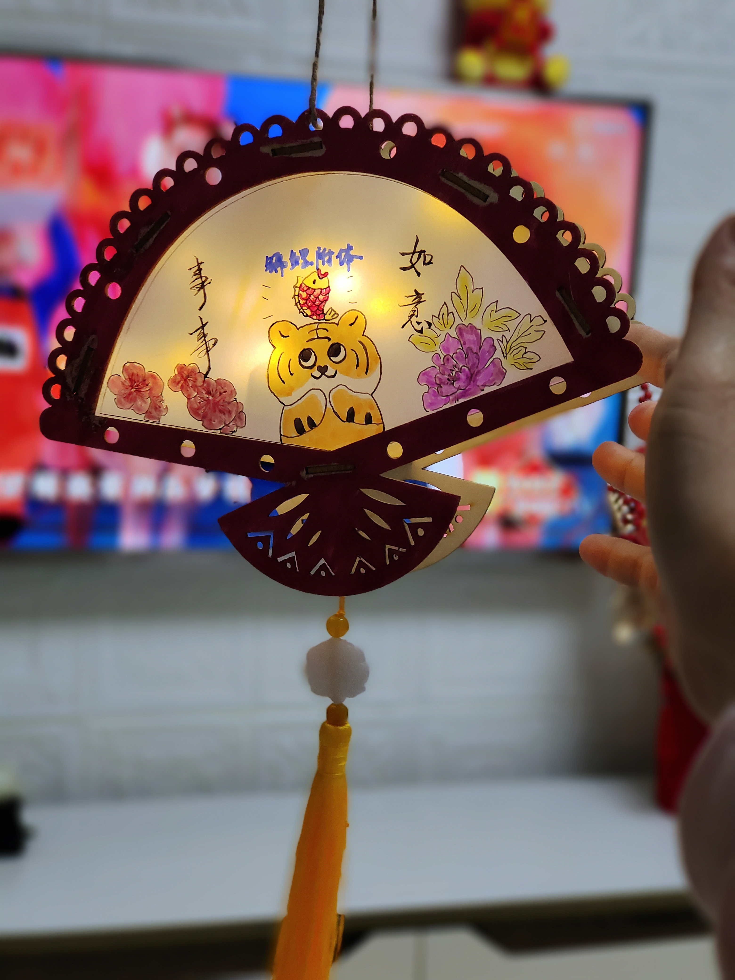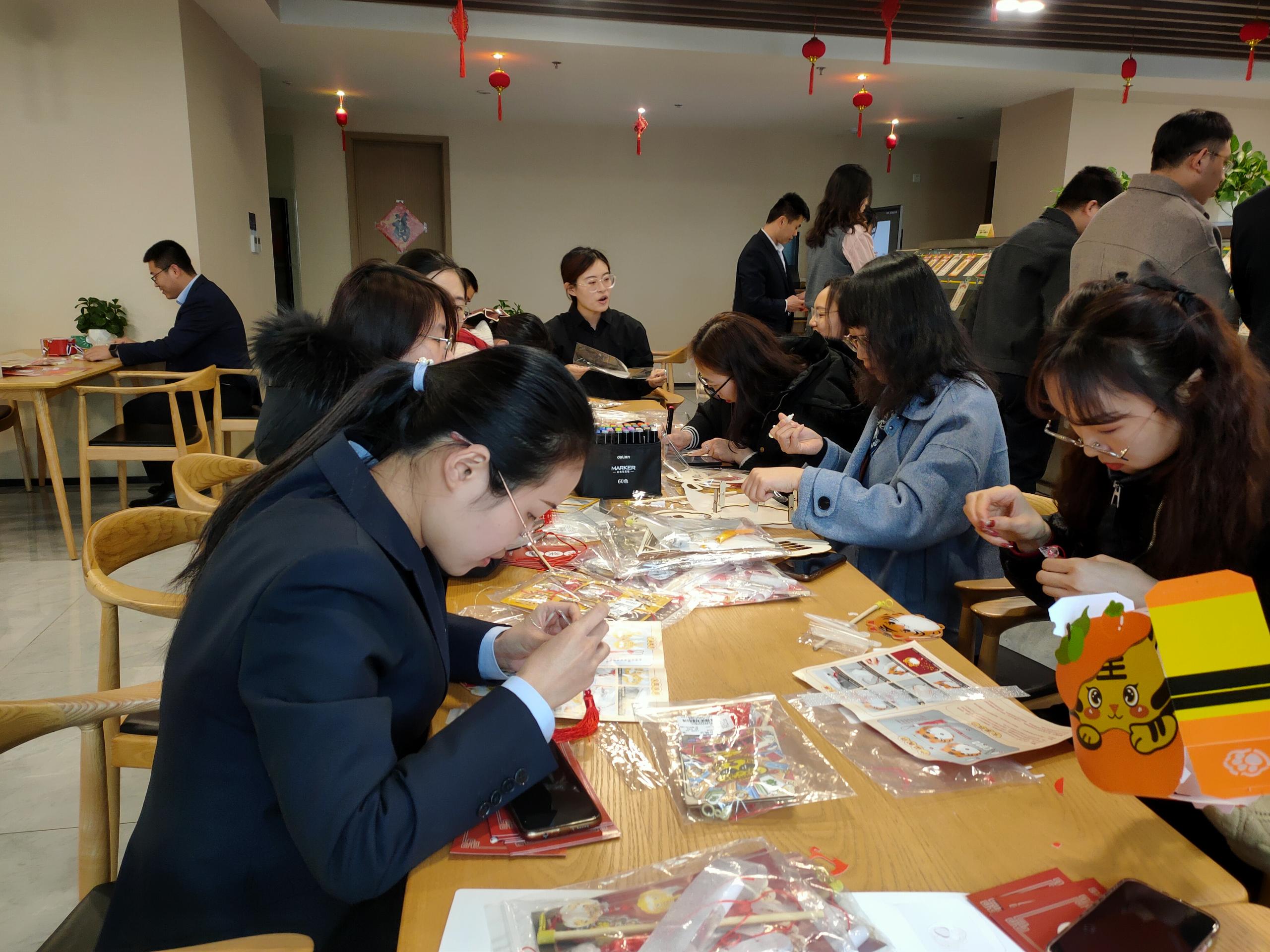 猜完燈謎,就到了大家最期待的做花燈環(huán)節(jié)。大家拿到材料包后,迫不及待地打開研究起來。集團(tuán)的小哥哥小姐姐們小心翼翼修剪、鏤空好燈面,并仔細(xì)地將不同的燈面粘貼、拼接起來。最后給燈籠掛上流蘇,頂部裝好燈桿,內(nèi)部插上彩燈后,一個精美的元宵燈就誕生了。“這是我親手做的燈籠,象征幸福、祥和,簡直太好看了!”做好燈籠的邵山成就感滿滿,興奮地和燈籠合影留念。
