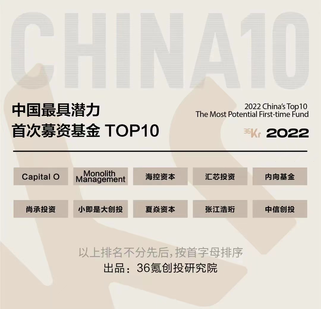 9月21日,36氪“2022中國基金合伙人未來峰會(huì)”在杭州舉行,會(huì)上揭曉了2022年度中國基金系列榜單,海控資本榮獲「2022年度中國最具潛力首次募資基金TOP10」榮譽(yù),收獲行業(yè)權(quán)威認(rèn)可。
