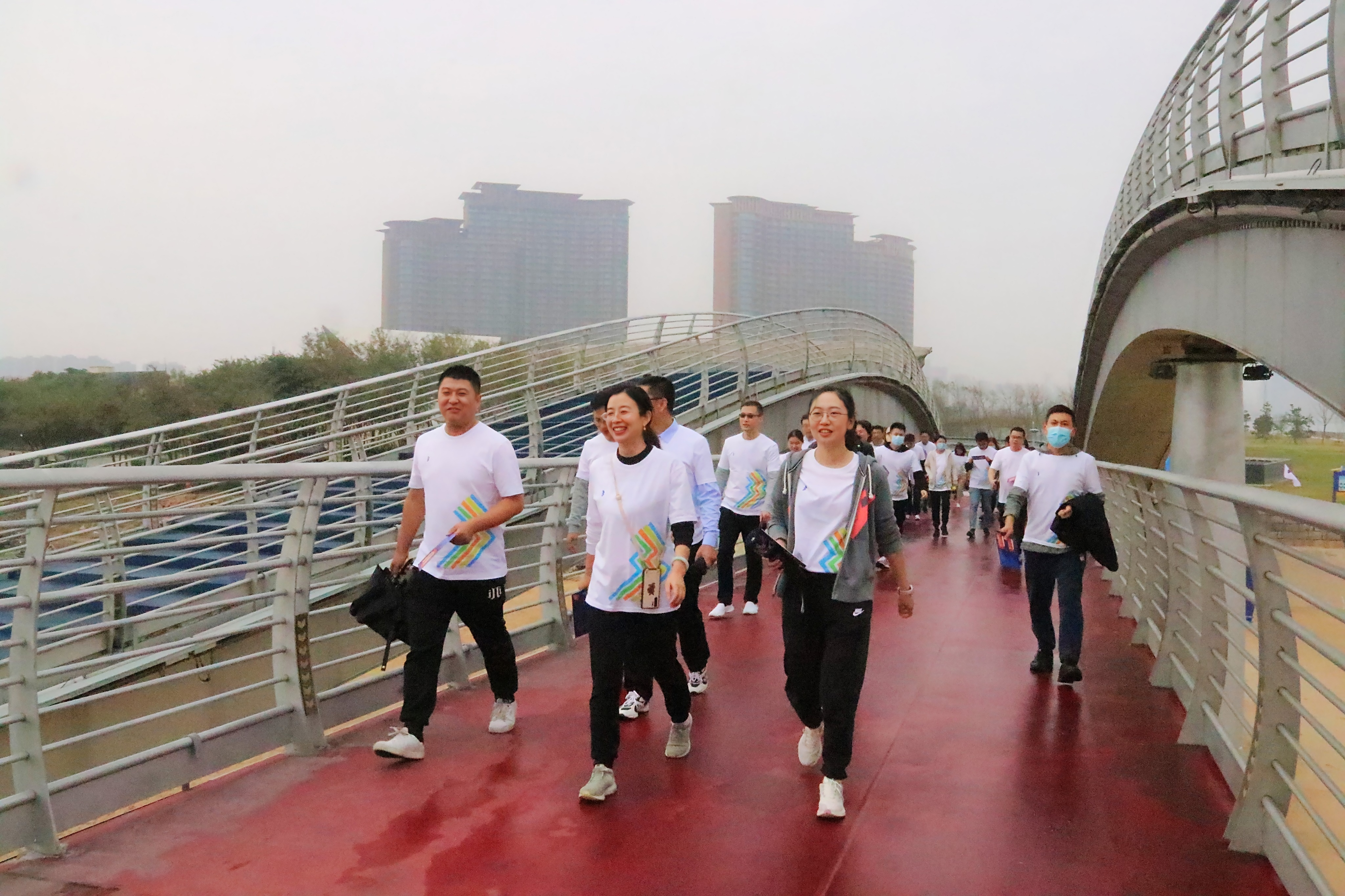 蒙蒙細(xì)雨,也擋不住大家的熱情。下午3時許,在集團黨委副書記王文景同志的宣布下,"活力海控 攜手同行"健步行活動正式開始,身著統(tǒng)一服裝的健步行隊伍從彩虹橋南岸出發(fā),浩浩蕩蕩,闊步前行。